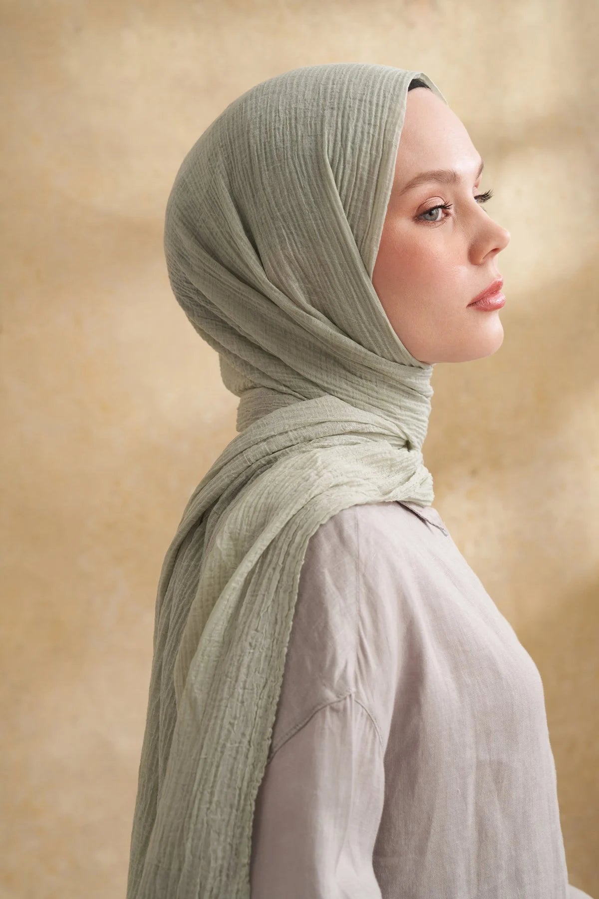 Musselin Blattmuster Mintgrün